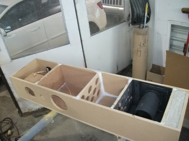 The next step is to add bracings to solidify and get the right volume for the woofer. Also install the port and seal everything.